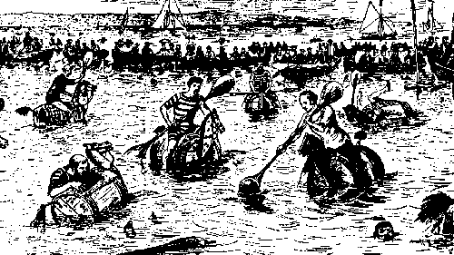 Los primeros partidos eran normalmente exhibiciones de fuerza bruta. Rara vez se practicaban pases, pases largos o combinaciones. Cada jugador consideraba que su deber era el de marcar goles sin importarles la posición. El gol era valido cuando se colocaba el balón con dos manos en lo alto del extremo de la piscina. Uno de los trucos favoritos de los jugadores era colocar la pelota dentro de su bañador y sumergirse en el agua turbia (en el caso de rios y lagos), apareciendo tan cerca de la portería como fuera posible. El jugador debía acercarse demasiado a la portería, el saltaba inesperadamente sobre el portero, al que se le permitía estar de pie en el borde.